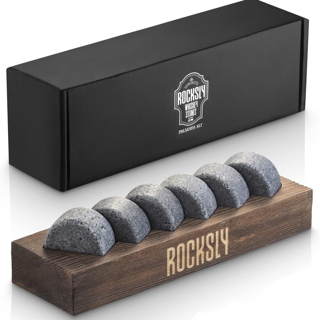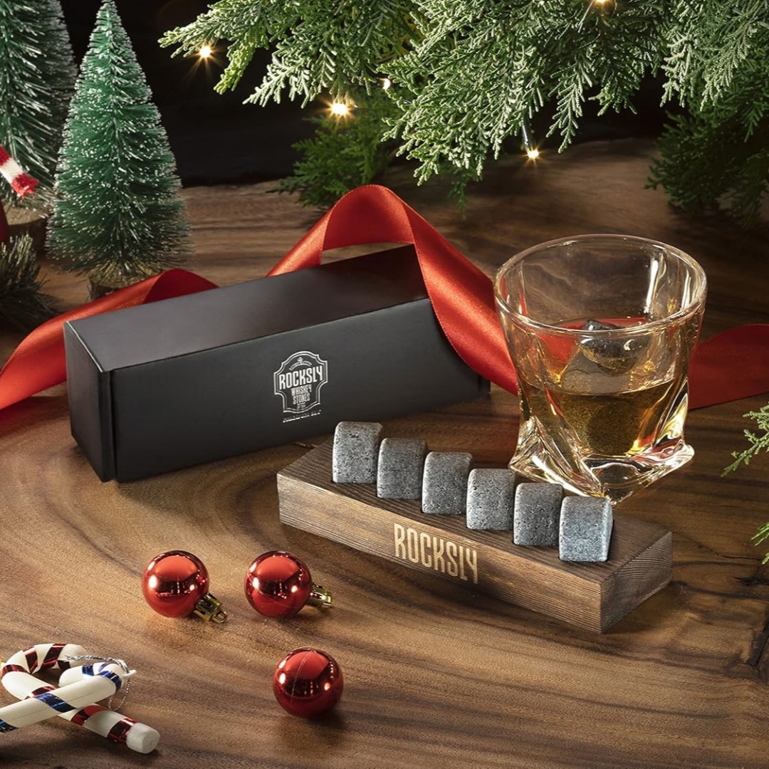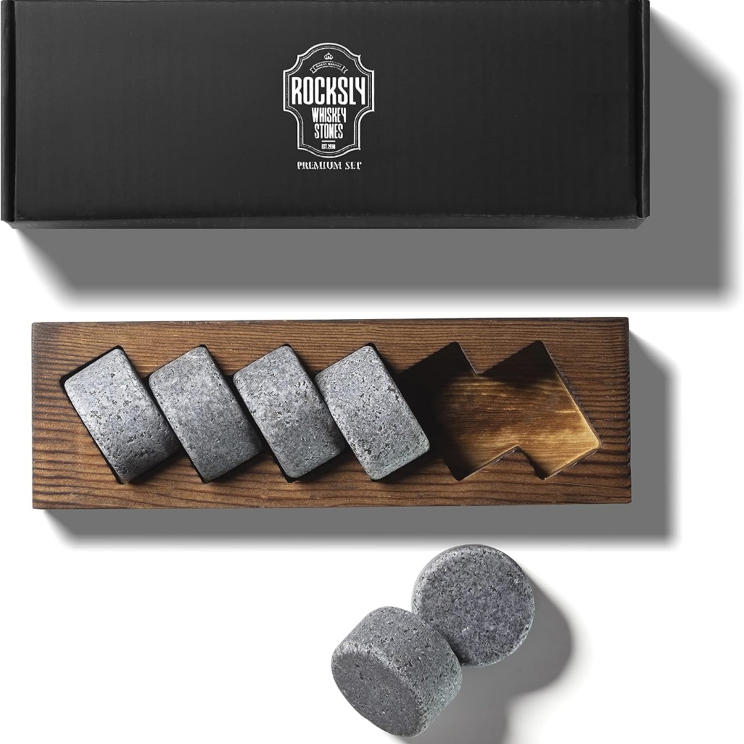 Shunstone Marble Whiskey Stones Gift Set of 6 Reusable Ice Cubes Chilling Rocks in a Wood Tray Business Gift for Men