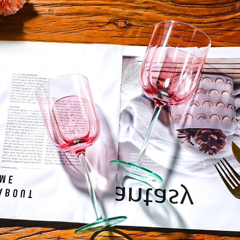 SHUNSTONE Premium Crystal Flower Shaped Burgundy Wine Glass Gift Set for Ladies Birthday Valentine’s Day Wedding Party